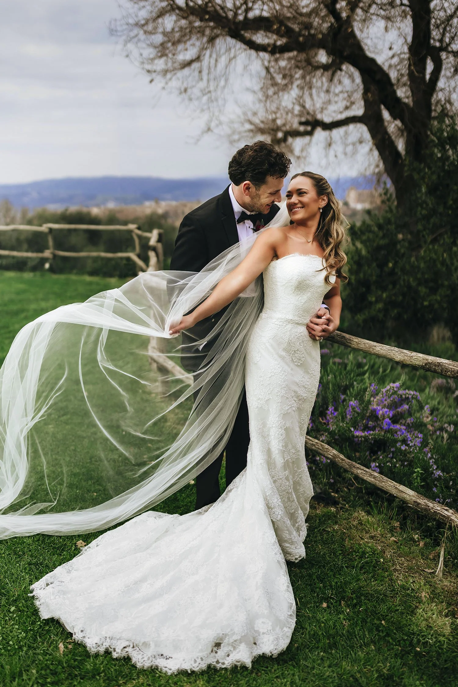 Cole and Claire traveled all the way from the United States to celebrate their wedding in the timeless beauty of Orvieto, choosing a place where history, landscape, and emotion blend effortlessly. Their celebration unfolded across two breathtaking venues, each offering sweeping views of the town’s iconic silhouette perched dramatically atop its hill, with the cathedral standing proud against the sky.
